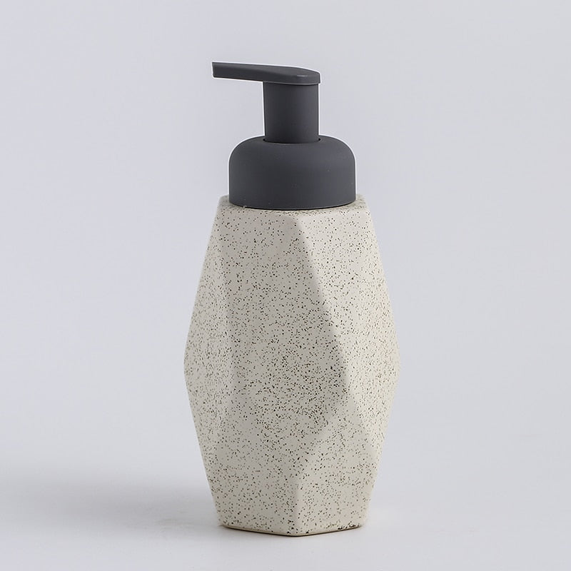 Gør en forskel i dit hjem med denne Moderne geometrisk sæbedispenser i keramik.