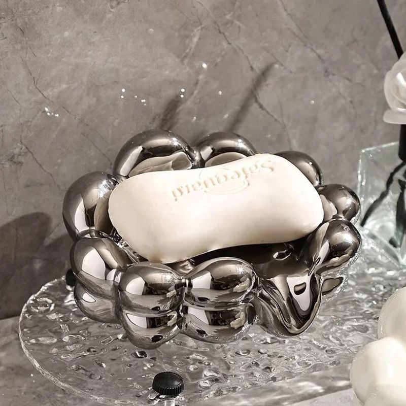 At holde dit badeværelse ryddeligt og organiseret behøver ikke at være kedeligt. Med vores moderne sæbeholder formet som en sky kan du nemt skabe et overskueligt og stilrent rum. Den innovative form er ikke kun smuk at se på, men også utrolig funktionel. De hævede punkter i bunden sikrer, at din sæbe dræner optimalt og forbliver tør mellem brug, hvilket forlænger dens levetid og forhindrer sæberester i at klistre til overfladen. Sig farvel til sjappede sæbestykker og hej til et rent og indbydende badeværelsesmiljø.
