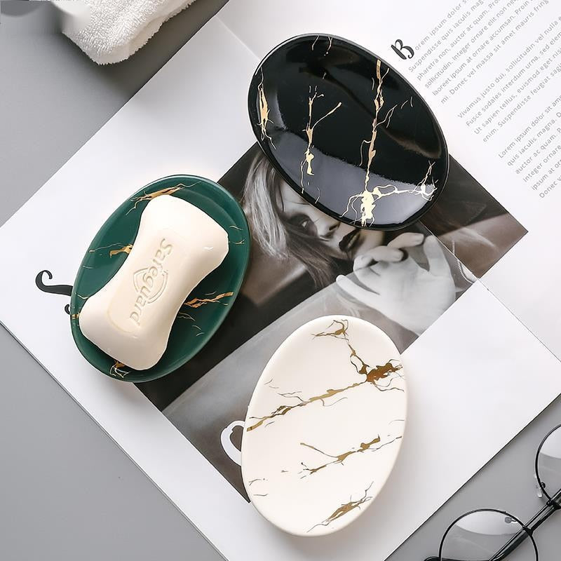 Hvorfor vælge vores Oval sæbeholder i sort marmor-look?