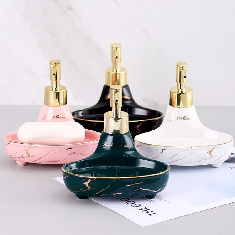 Få orden og stil med en Sæbedispenser med sæbeholder i marmorlook