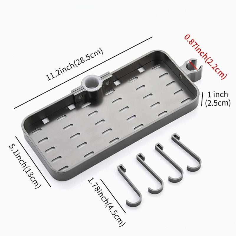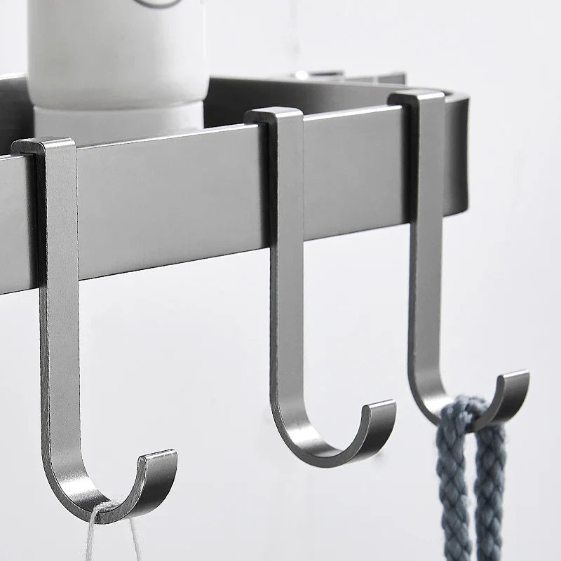 - Inkluderer praktiske kroge til ophæng af badesvampe, vaskeklude eller lignende.